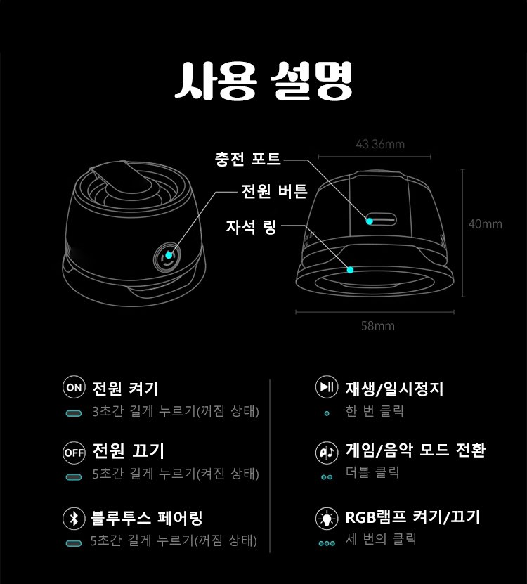 무선 휴대용 마그네틱 블루투스 스피커